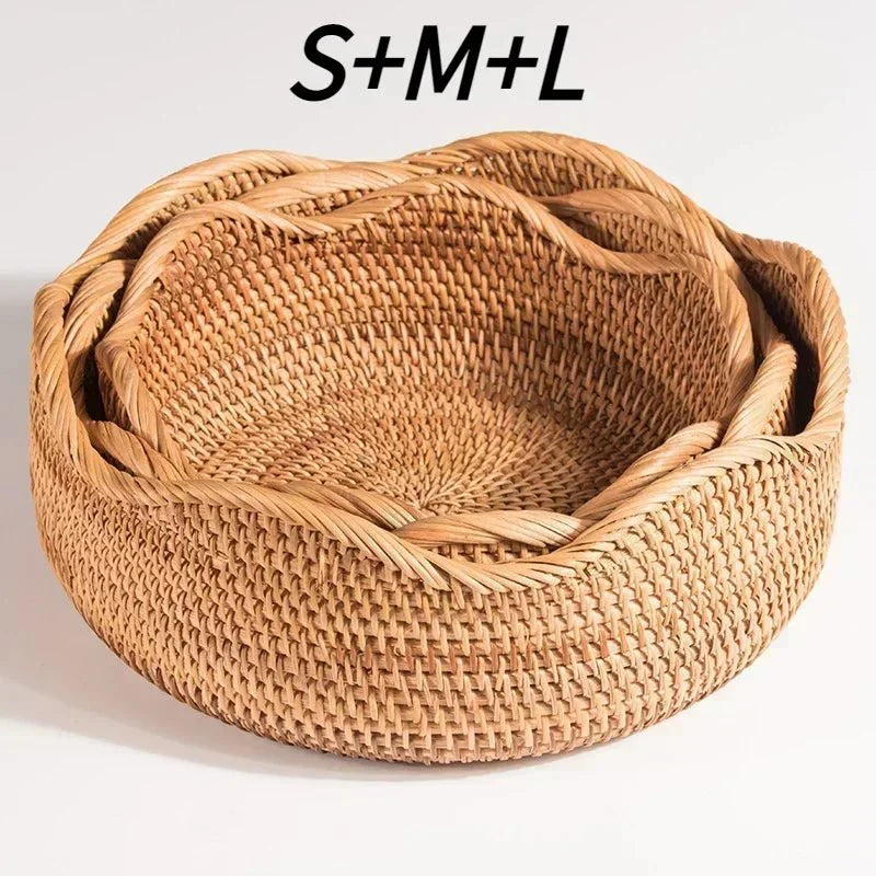 Bandeja de Armazenamento em Vime de bamboo Cestinha de Pão, Frutas, etc