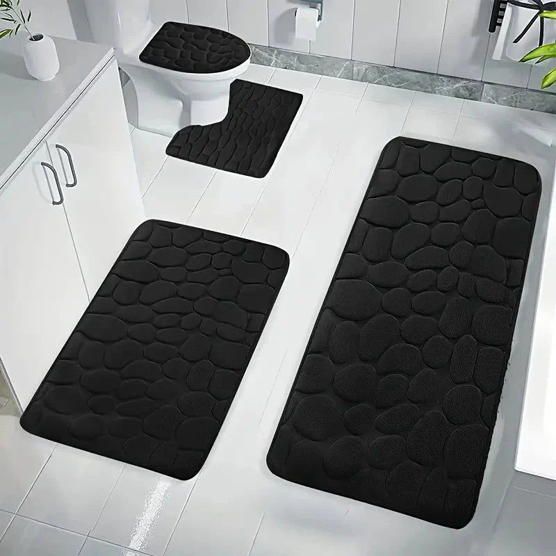Dê um toque de aconchego e segurança ao seu banheiro com o Conjunto de 3 Tapetes Antiderrapantes, Macios e Texturizados!