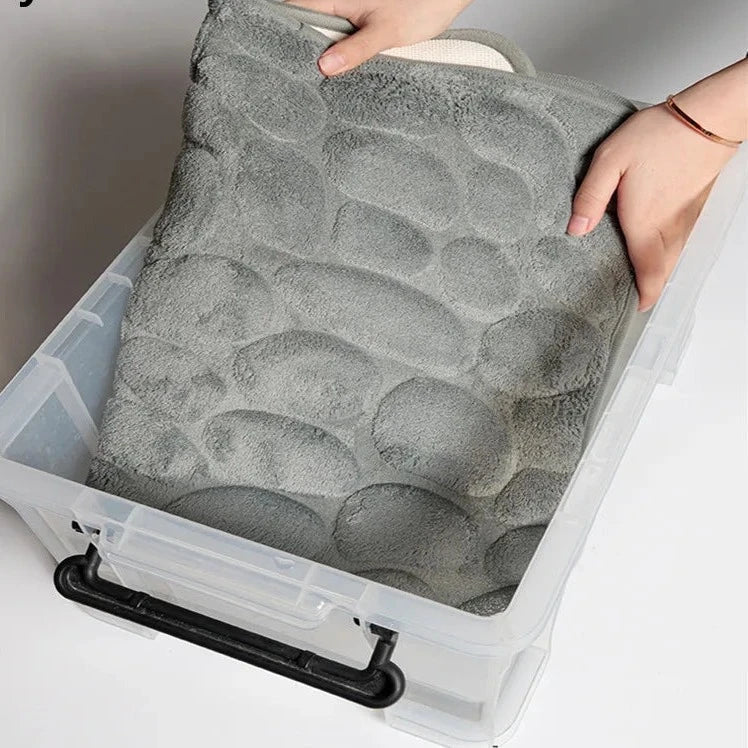 - Pés descalços sempre aquecidos e confortáveis: A superfície macia e felpuda dos tapetes proporciona uma sensação acolhedora ao pisar, mesmo após um banho relaxante.