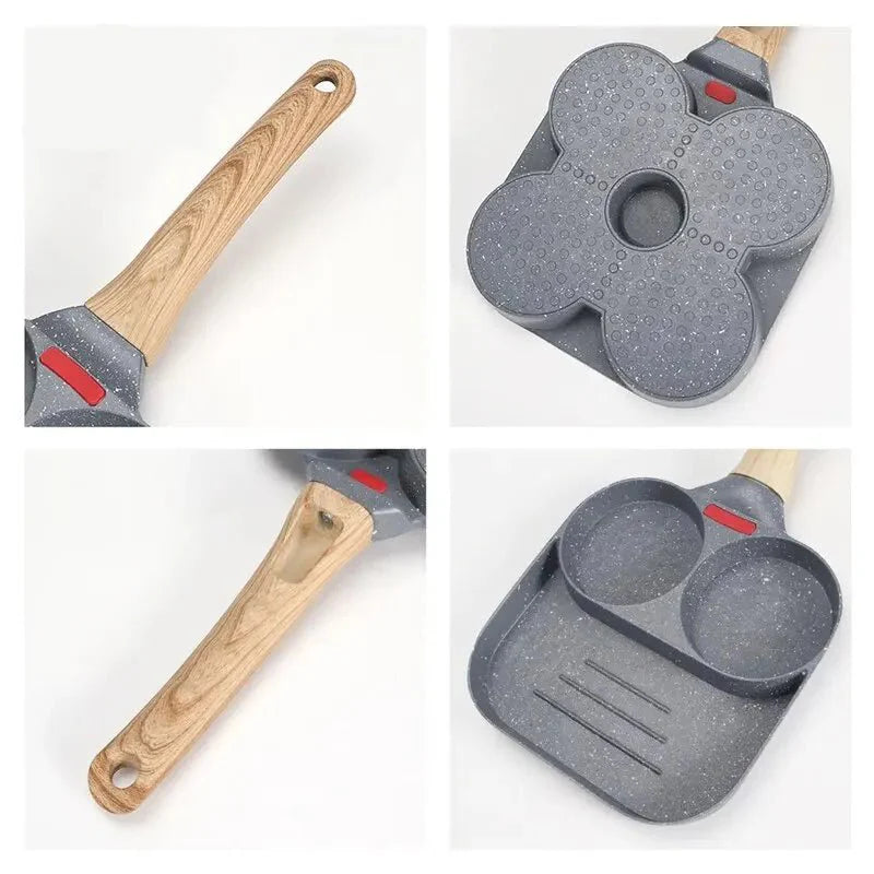 Frigideira Antiaderente com 3 Furos/4 Furos e Cabo de Madeira - A opção perfeita para preparar omeletes, bifes e ovos de forma fácil e eficiente. A tecnologia antiaderente facilita a limpeza, enquanto o cabo de madeira adiciona um toque de estilo à sua cozinha. Um utensílio versátil para suas criações culinárias.