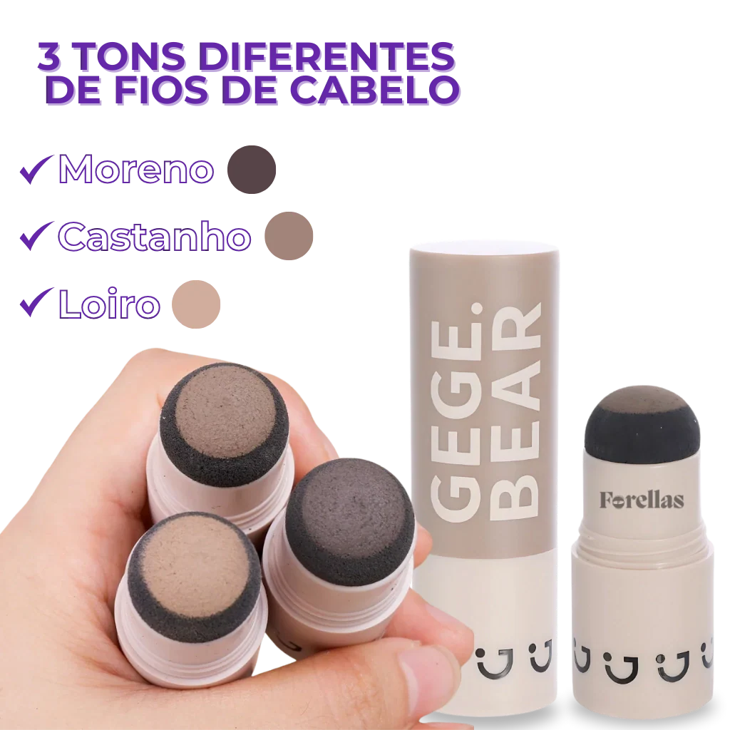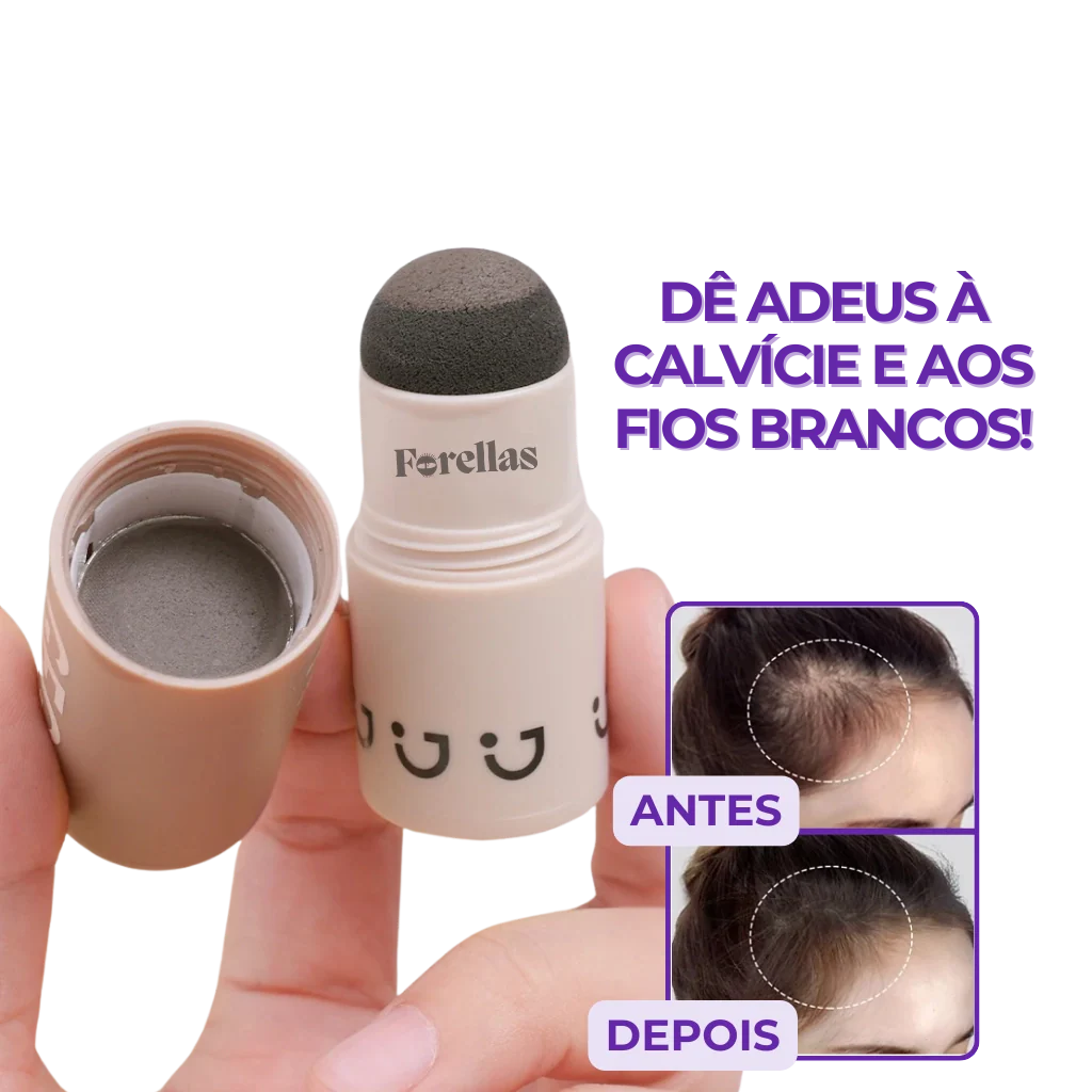 Maquiagem Capilar Forellas: cobertura instantânea, acabamento seco e natural.