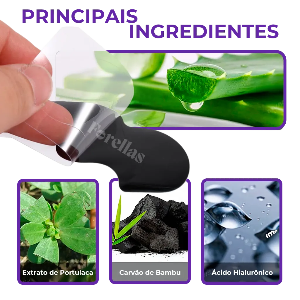 Ingredientes ativos: Carvão de Bambu, Ácido Hialurônico, Portulaca