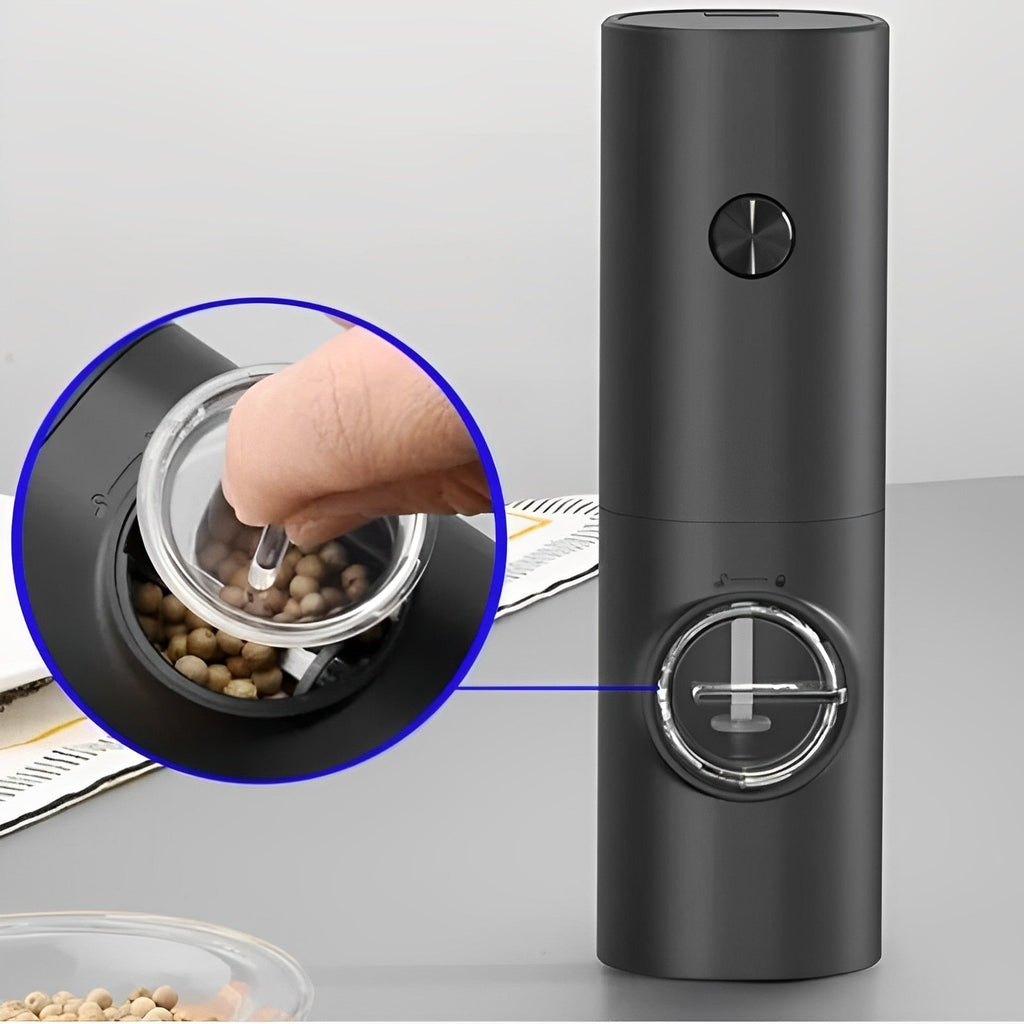Aprimore suas refeições com o Moedor Elétrico Automático de Sal, Pimenta e Temperos. Com ajuste de moagem personalizado, esse dispositivo oferece conveniência e precisão ao seu alcance. Seja para uma textura fina ou mais grossa, o controle é intuitivo e eficiente. Com um design elegante e operação fácil, este moedor traz praticidade à sua cozinha, garantindo sabores frescos em cada prato. Transforme sua experiência culinária com a simplicidade e sofisticação do Moedor Elétrico Automático.