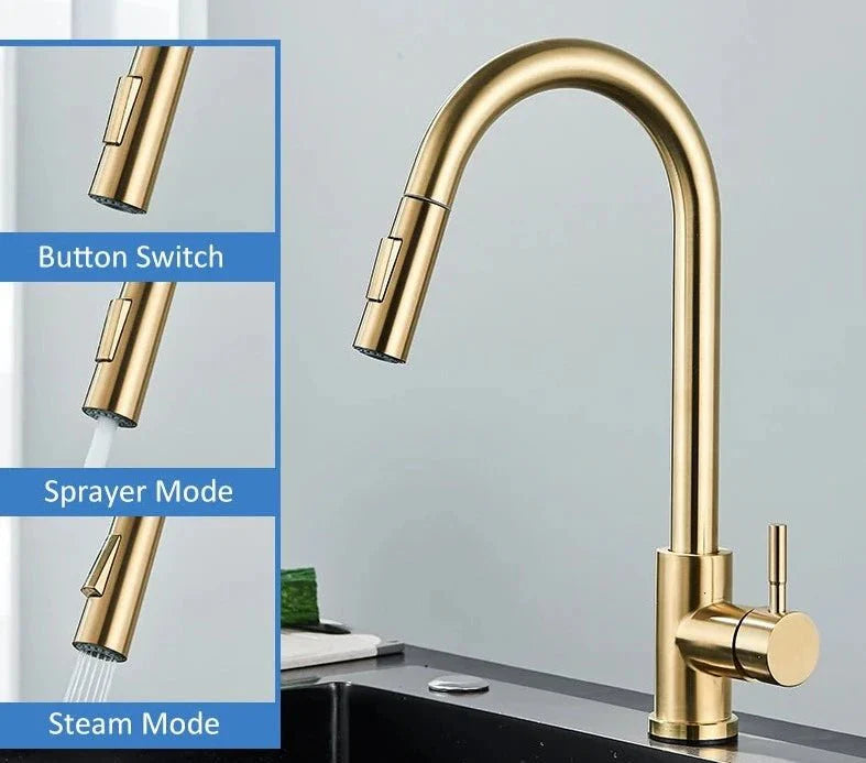 Transforme a sua cozinha em um espaço de elegância e sofisticação com a nossa Torneira Gourmet Para Cozinha Simple Gold. Este toque de ouro não é apenas um acessório, mas uma declaração de estilo. Desfrute de funcionalidade incomparável com um design minimalista e acabamento dourado que eleva instantaneamente o ambiente.