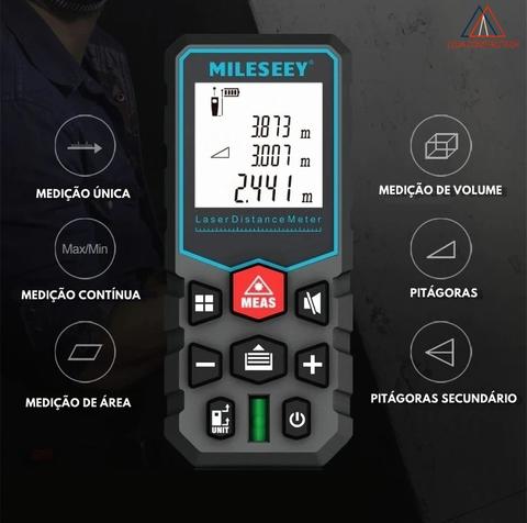 Fácil Medição: Projetado para facilitar a medição é muito fácil de usar, possuindo várias funções, como medição em linha reta, em área, em volume. Também possui as funções pitágoras.